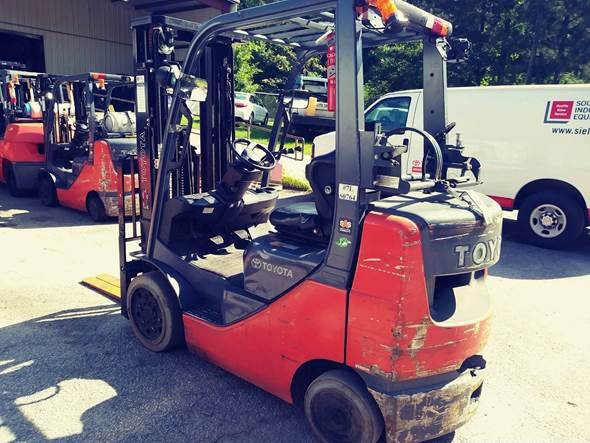Southeast Industrial Equipment is offering the Used 2014 Toyota Ic Cushion Forklift 8FGCU25 for sale, lease or rent. This Toyota Lpg powered unit located at our Columbia, SC branch. Because our inventory is always changing, please contact us with any questions about this Ic Cushion Forklift during business hours at (866) 696-9125 or contacts@sielift.com and we will answer any questions you may have about our current inventory or to discuss your materials handling needs. We offer service solutions for all lift trucks and material handling equipment whether on-site at your location or ours. We have 10 forklift dealerships in Charlotte, NC, Duncan, SC, Florence, SC, Charleston, SC, Columbia, SC, Wilson, NC, Savannah, GA, Richmond, VA, Raleigh, NC and Hampton Roads, VA.