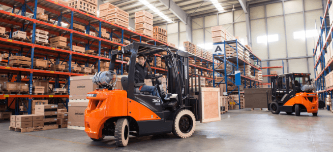A Toyota class V is a diesel or LP internal combustion pneumatic tire truck. This line of trucks is best for navigating outdoor uneven and rough terrain. These are bigger trucks so a great option when you are not concerned about the amount of space you have to work around.