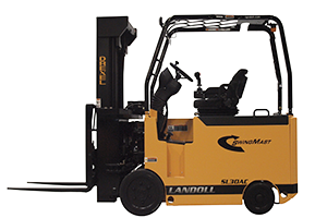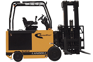 When it comes to maximizing your storage space, nothing else measures up to the Landoll Drexel VNA (Very Narrow Aisle) Front/Side Loading Swingmast® Forklift. The Swingmast® has a unique design enabling drivers to rotate the mast assembly 90° and shift left and right to pick or place loads in racks from very narrow aisles without turning the forklift. It will operate in aisles as narrow as 4-1/2′ (1.37M), allowing maximized storage in your warehouse. The versatile Landoll Drexel SwingMast® VNA (very narrow aisle) forklift gives you four lift trucks in one; performing like a conventional counterbalanced truck, a reach truck, a sideloader, and a turret truck. Models are available in capacities from 3,000 lbs. (1363kg) to 12,000 lbs. (5454kg); with three or four-stage masts with lift heights up to 31′ (9.45M). The Drexel Swingmast® is available in both Electric and LP Gas powered models. Landoll offers a Drexel EX (explosion proof) rated front-loading forklift certified by Underwriters Laboratories (UL) for use in flammable environments.