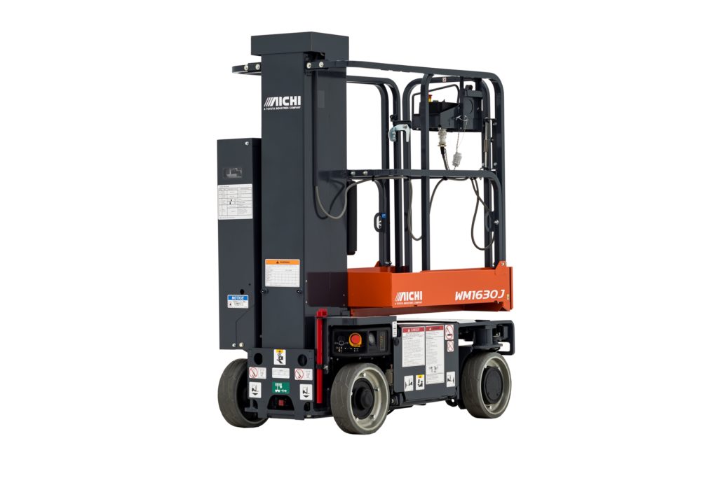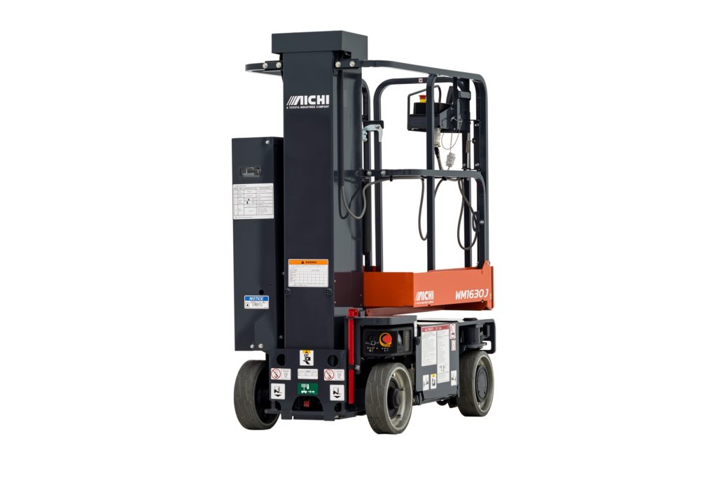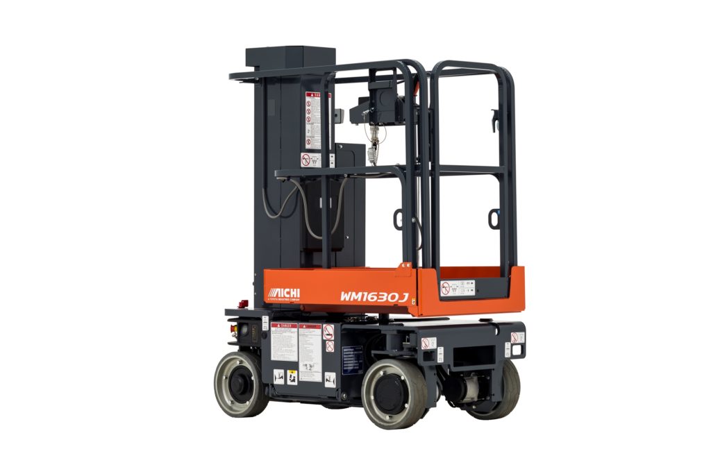 The Aichi Vertical Mast Lift WM1630J delivers a versatile solution for tight-fitting construction and maintenance needs like piping, plumbing, and painting. With a platform lifting height of just over 16 feet your working height reaches to 22 feet. A zero-degree turn radius offers the key to accessing hard to reach locations. Using state-of-the-art AC drive motors, it also offers precise travel and industry-leading run time that equate to greater efficiency and low cost of ownership.