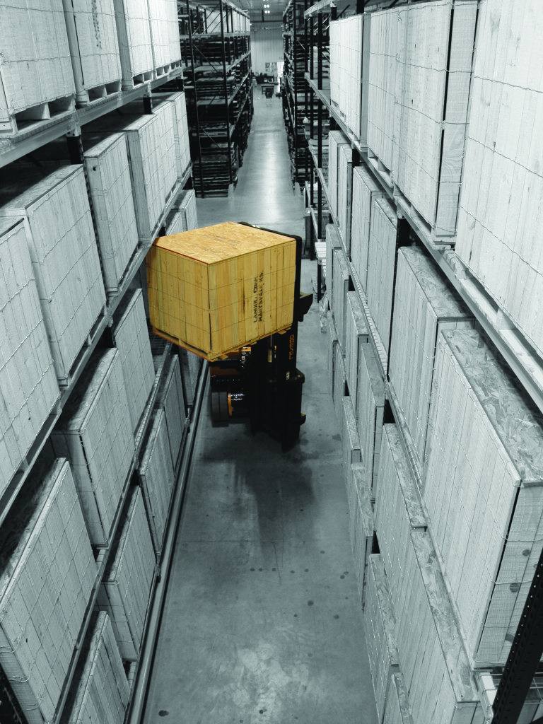 The Drexel model SL30AC, SL40AC and SL50AC work in aisles as narrow as 56″ (1.4M), have a basic capacity of 3,000 lbs. (1363kg), 4,000 lbs. (1818kg) and up to 5,000 lbs. (2272kg) at 24″ (600mm) load center and have lift heights available to 31′ (9.45M). The SL30AC, SL40AC and SL50AC are 4-Wheel SwingMast® VNA and Side Loading Forklifts with independently driven front wheels and dual rear steer tires. The front mast rotates 90° and has side shift of 22” (500mm), allowing easy stacking in Very Narrow Aisles. These models can work inside and outside on paved surfaces and can perform the jobs of a normal front loading and side loading forklift including loading and unloading highway trucks and containers, working in bulk storage, drive in rack, cantilever rack, push back rack, double deep and climbing steep ramps. The SL range does the jobs of reach, counterbalanced trucks in aisles over 50% smaller. The ability to store and transport long loads as a side loader increases versatility and maximizes utilization.